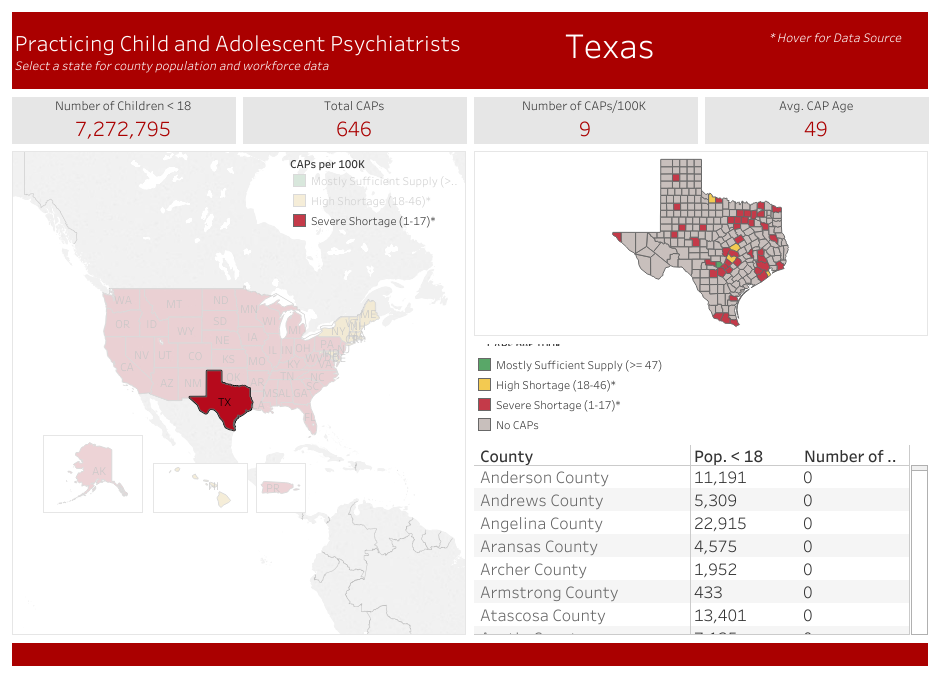 There are approximately 8,300 practicing child and adolescent psychiatrists in the US and over 15 million children and